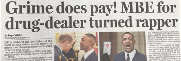 Grime entered the most elite realms of British culture in 2018 when Wiley was invited to Buckingham Palace to collect his MBE for services to music. Unfortunately, the Daily Mail were too concerned marking the occasion with the headline “Grime Does Pay! MBE for drug-dealer turned rapper” focusing on Wiley’s past to deliberately reinforce negative stereotypes about black music and downplaying his actual achievements. This explicitly demonstrates how Grime music, amongst other urban dance music is targeted by moral panics in the media, and how such stereotypes have led to certain legislations to be implemented undoubtedly disadvantaging the scene.
